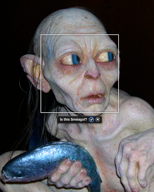 Sméagol February 01, 2009 The new iPhoto face recognition feature is a little too good. :) Comment · ∞ Permalink