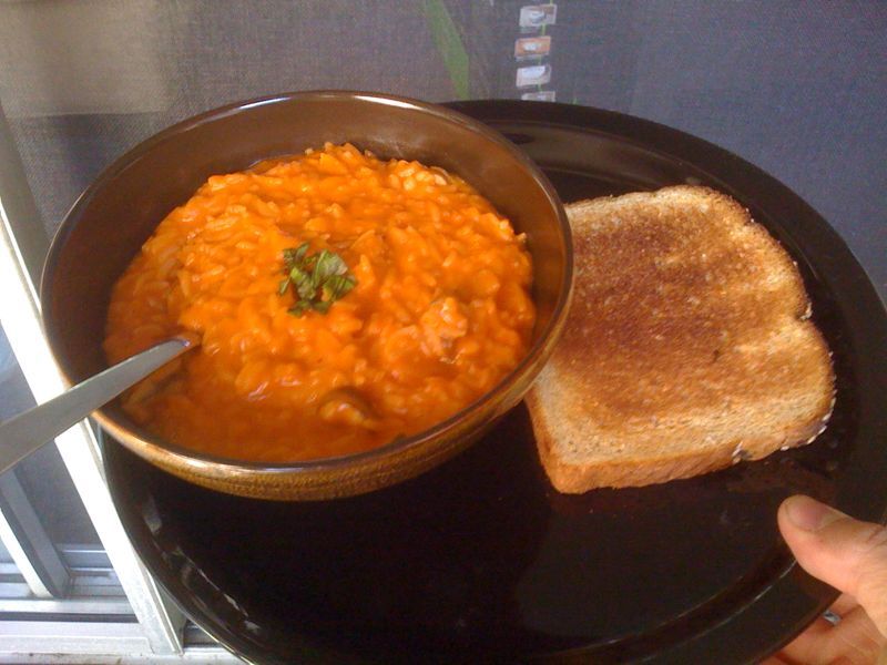 Jasmine rice with organic creamy tomato sauce, crushed black pepper, crimini mushrooms and fresh basil.